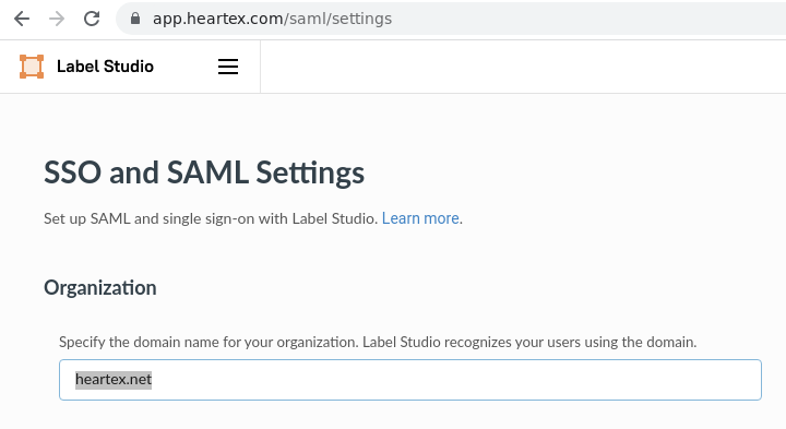Administrators can find the domain on the SAML SSO page: